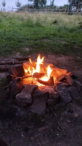 Krásná velká louka upostřed lesů, kde budete mít naprosté soukromí a klid. A využili jsme i boudu, když pršelo. Určitě si to zopákneme.